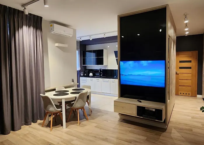 Oferujący zaplecze spa, takie jak sauna, Nadmorski Dwor Modern Gdańsk znajduje się prawie 15 min jazdy autem od Muzeum Figur Woskowych. 1-pokojowy apartament kusi gości sauną, zapewniając najwyższy komfort przy basenie.